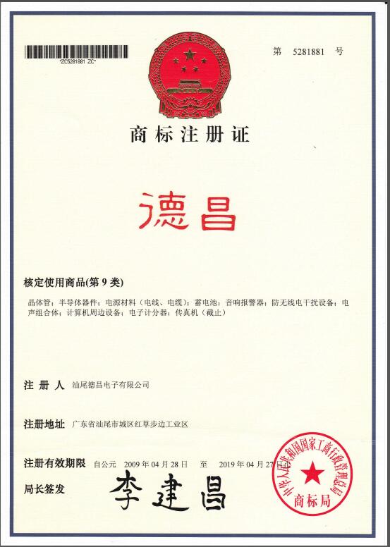 是汕尾德昌電子有限公司在中國的注冊商標之一,受法律保護,侵權(quán)必究。