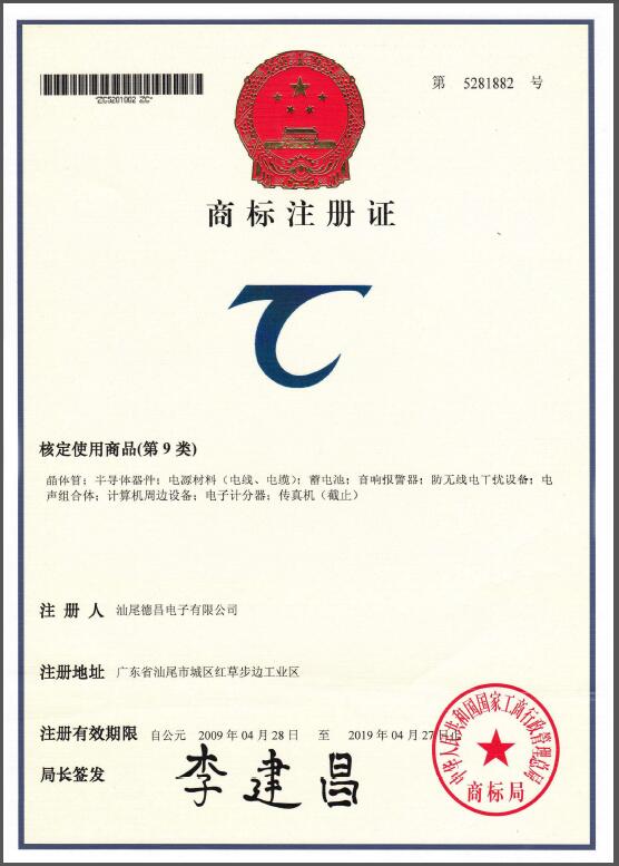 是汕尾德昌電子有限公司在中國(guó)的注冊(cè)商標(biāo)之一,受法律保護(hù),侵權(quán)必究。